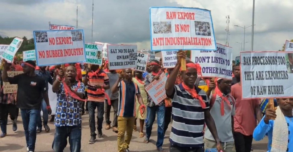 Over 2,000 rubber farmers and aggregators from the Western Region have staged a peaceful demonstration in the Sekondi-Takoradi Metropolis to protest calls for a total ban on raw rubber exports, calling the claims against the trade misleading and self-serving.