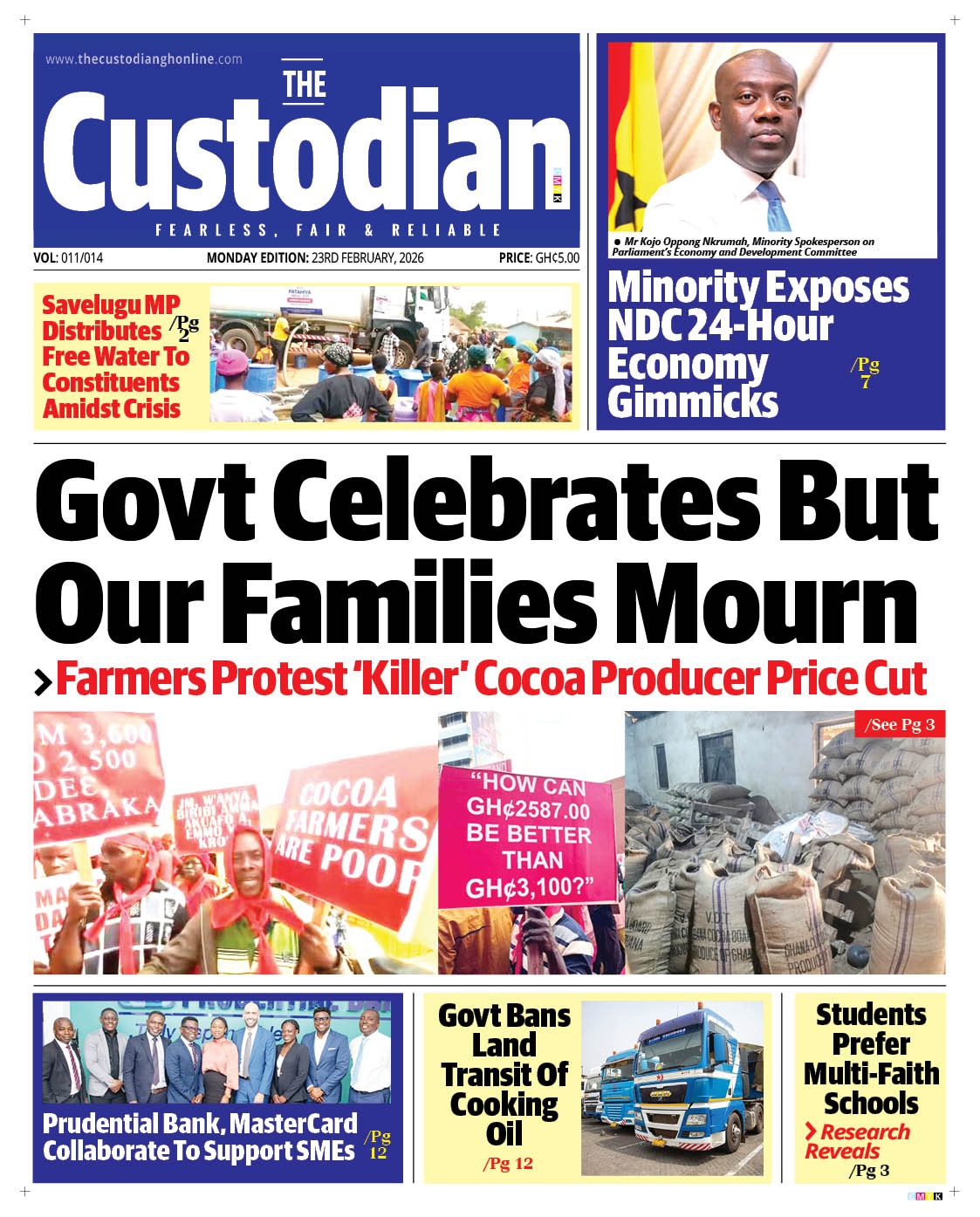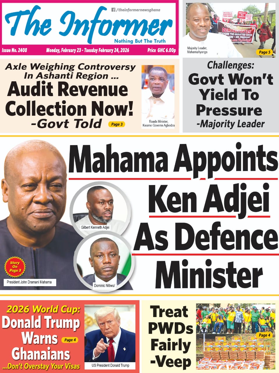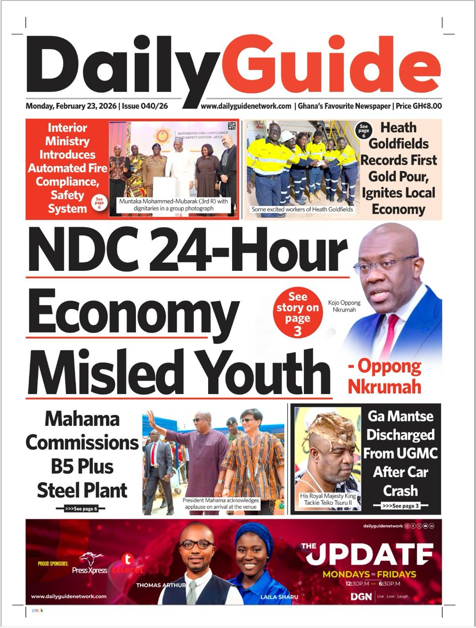Here are today’s newspaper headlines, Monday, February 23, 2026