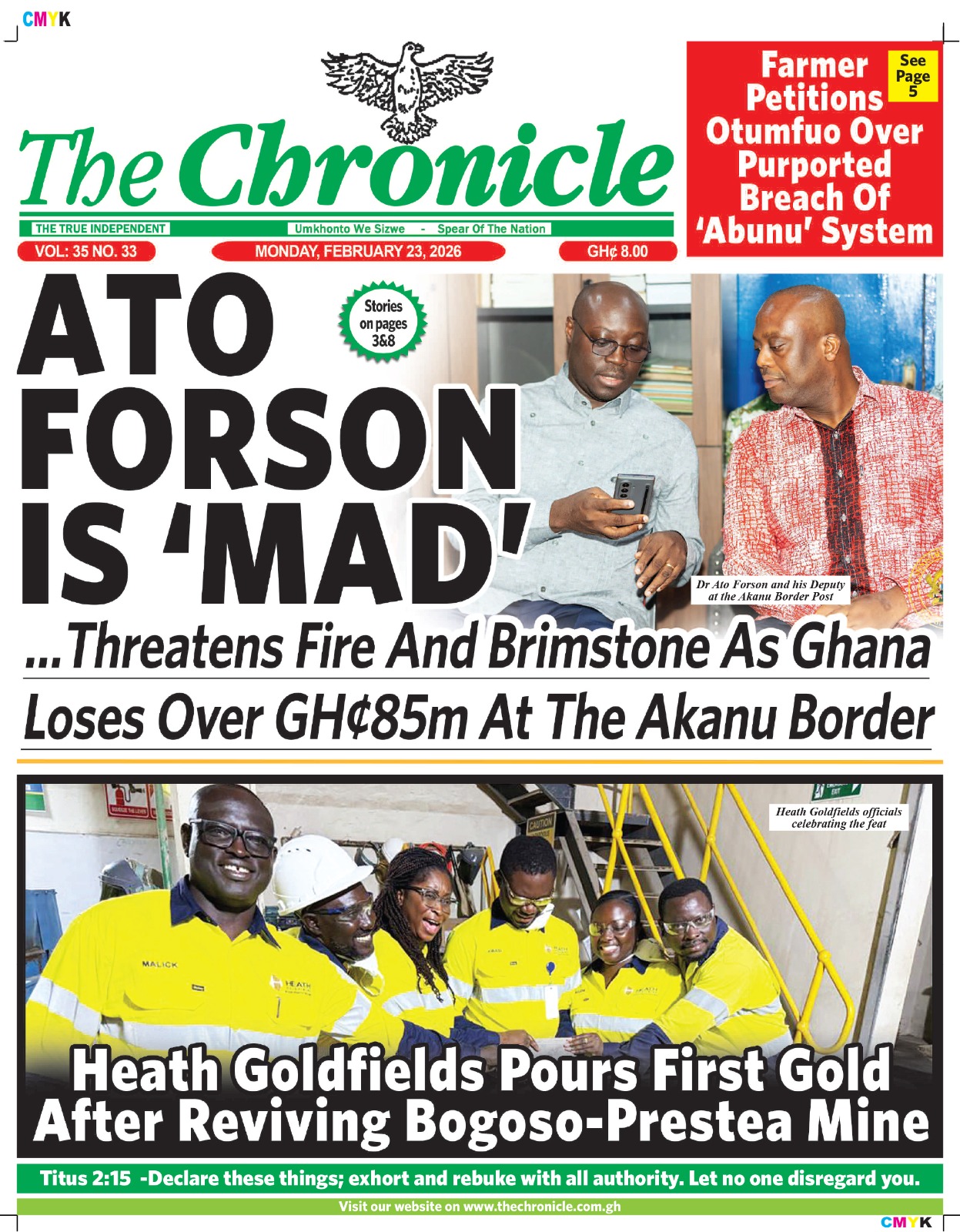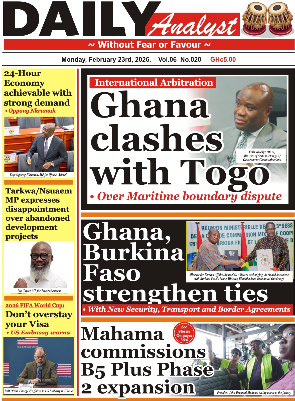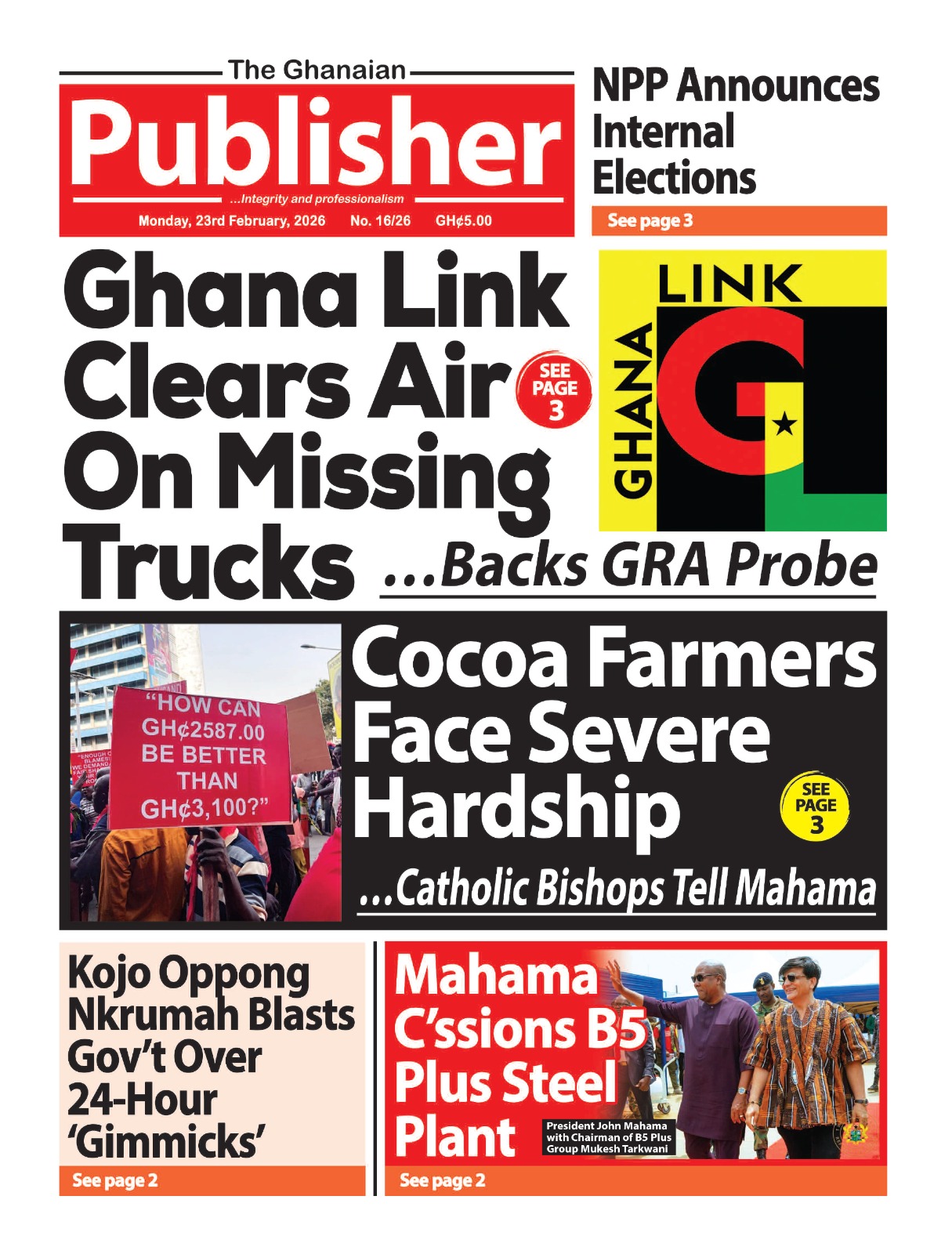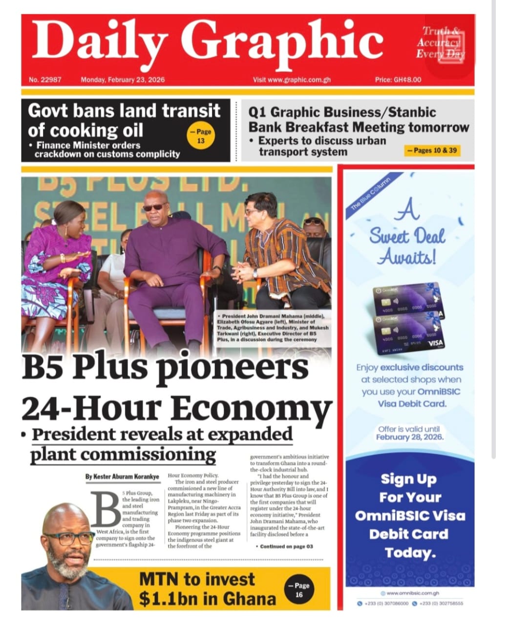 Here are today’s newspaper headlines, Monday, February 23, 2026