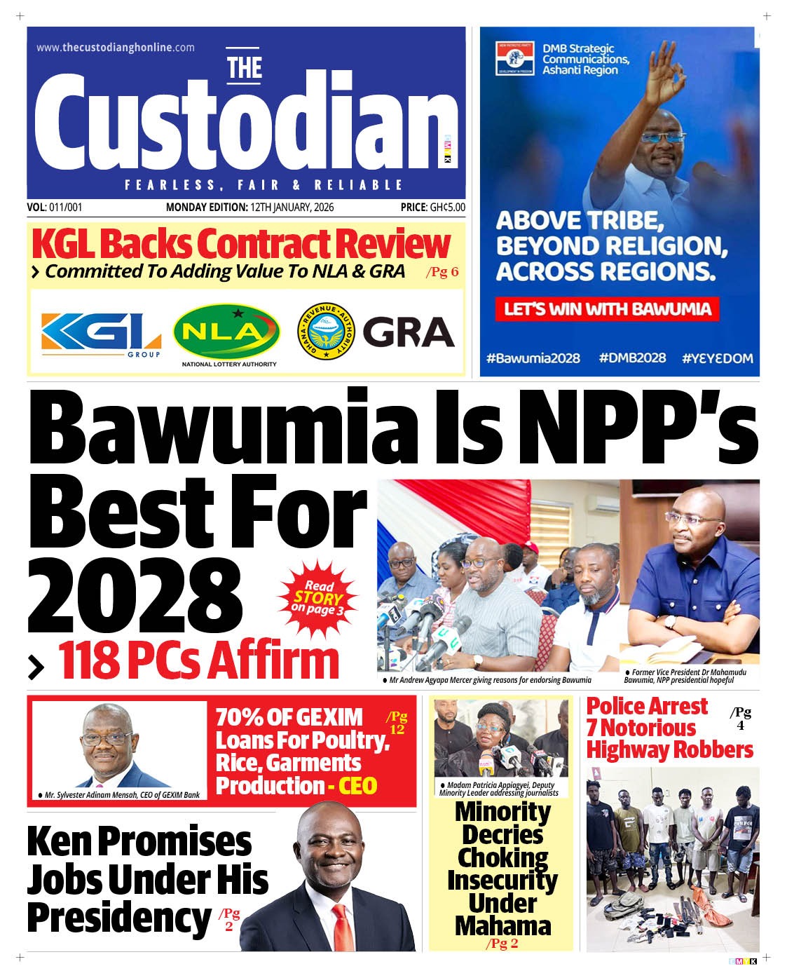Here are today’s newspaper headlines, Monday, January 12, 2026