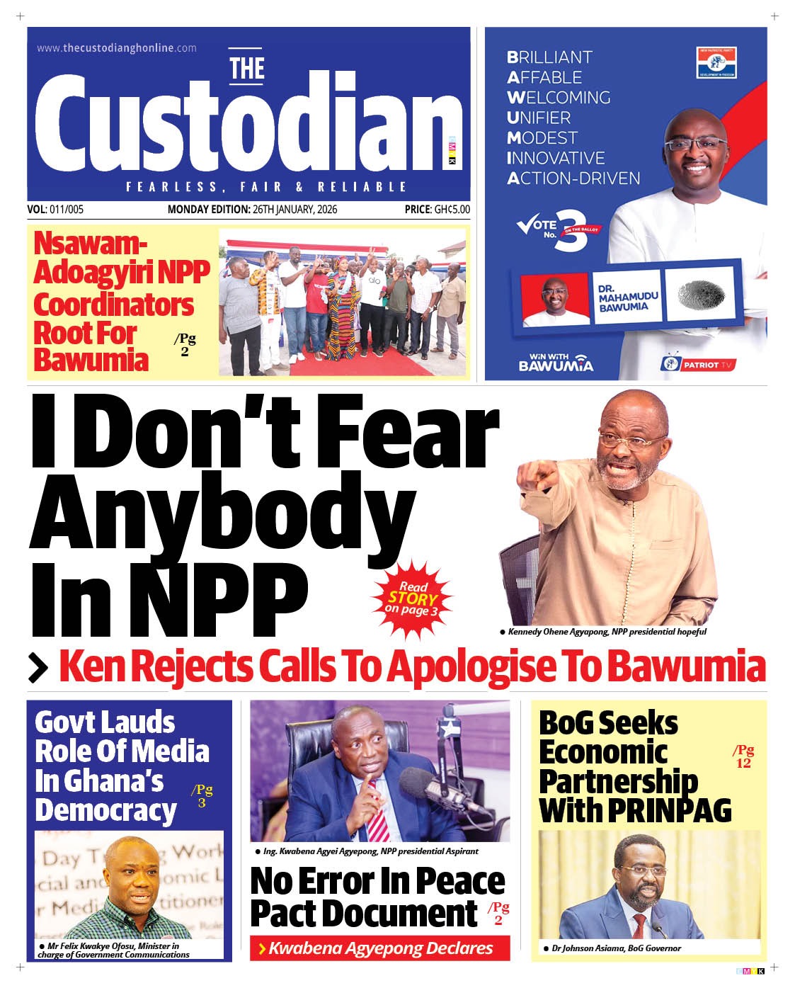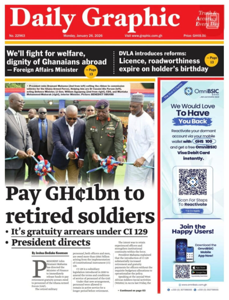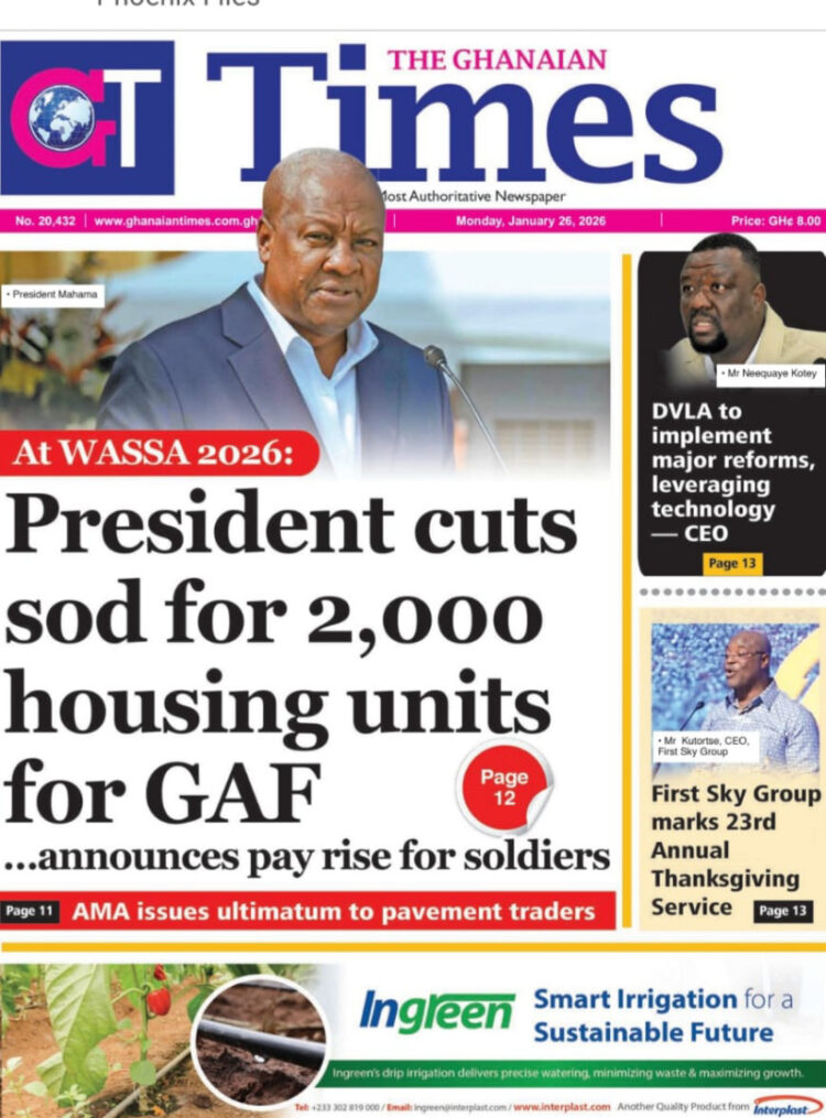 Here are today’s newspaper headlines, Monday, January 26, 2026