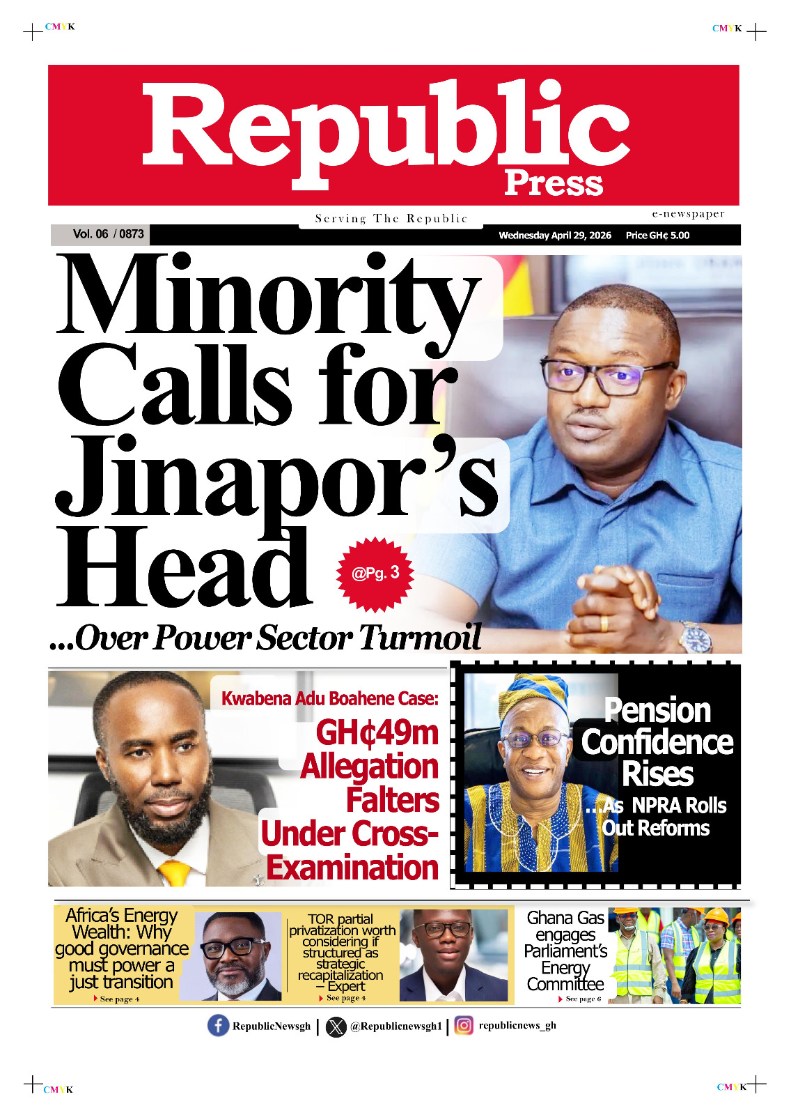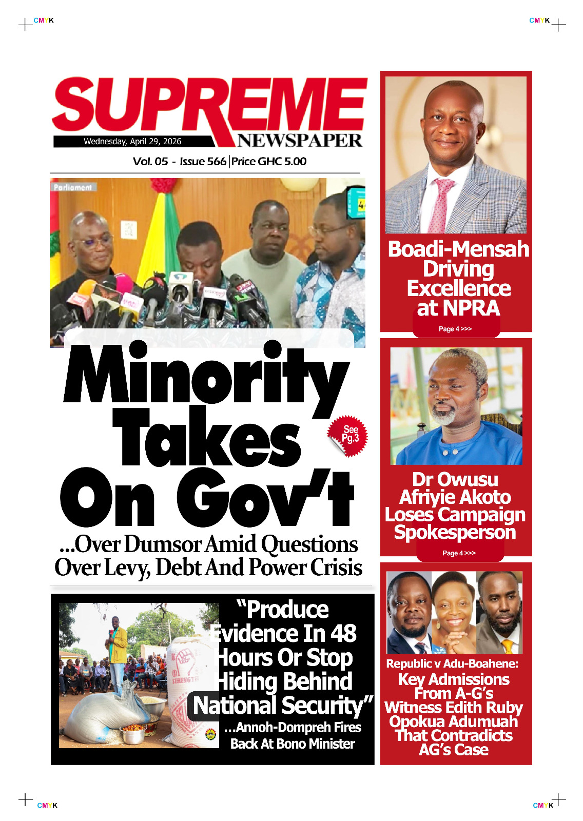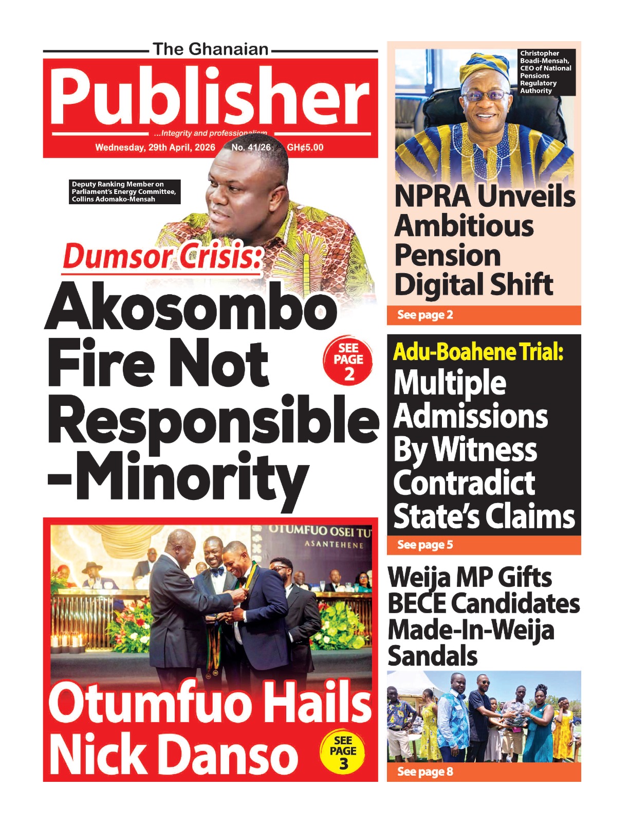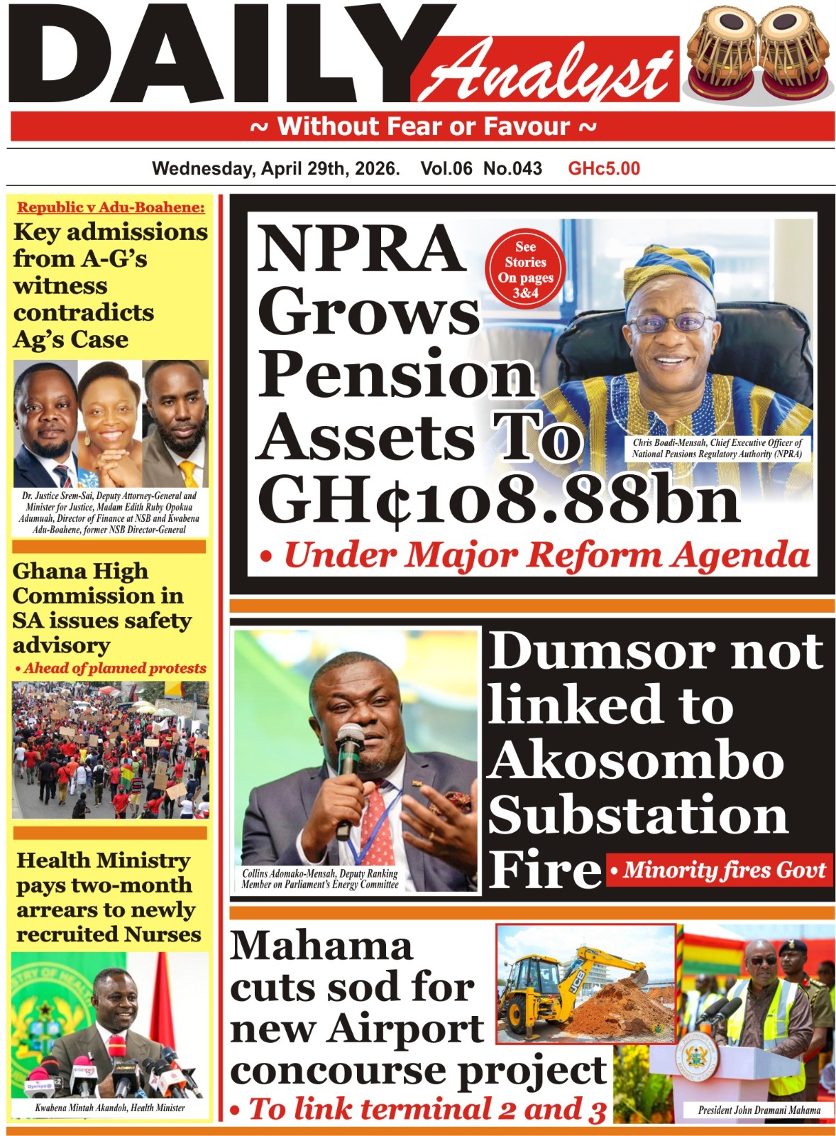 Here are today’s newspaper headlines, Wednesday, April 29, 2026
