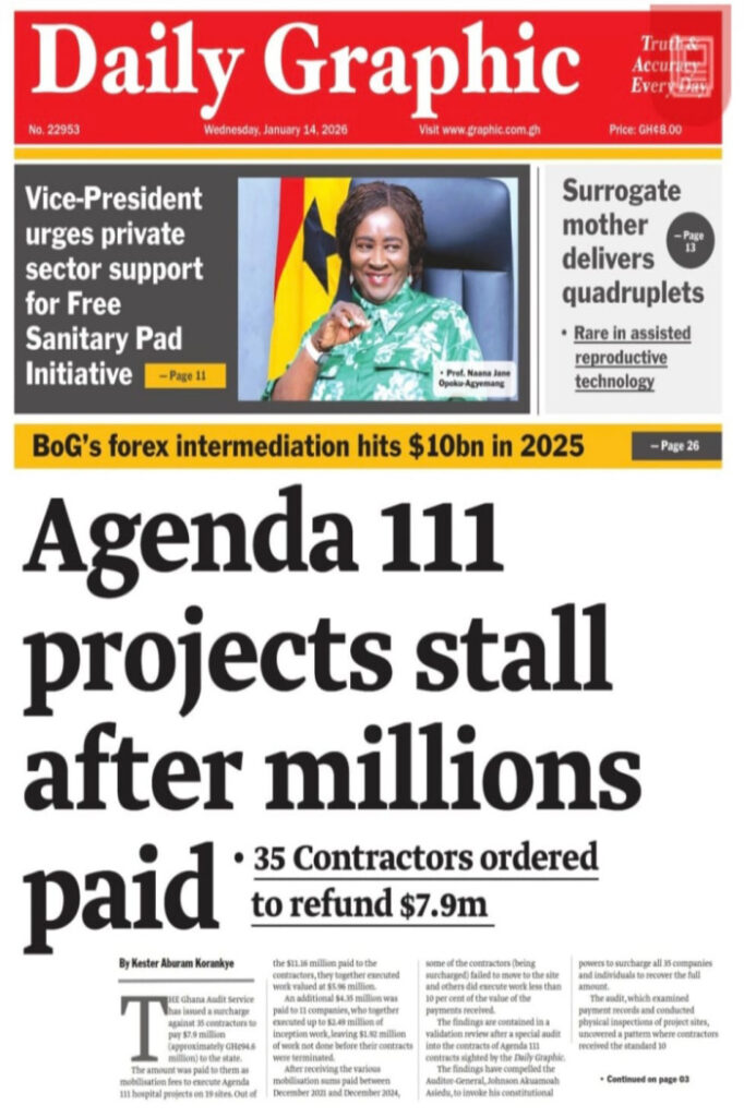 Here are today’s newspaper headlines, Wednesday, January 14, 2026