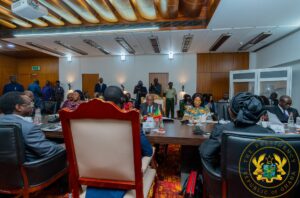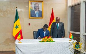 After the bilateral talks between the two leaders, President Akufo-Addo hosted a state banquet (lunch) in honour of President Bassirou Diomaye Diakhar Faye. Before departing the Jubilee House, President Faye signed the guest book at the foyer of the Jubilee House.